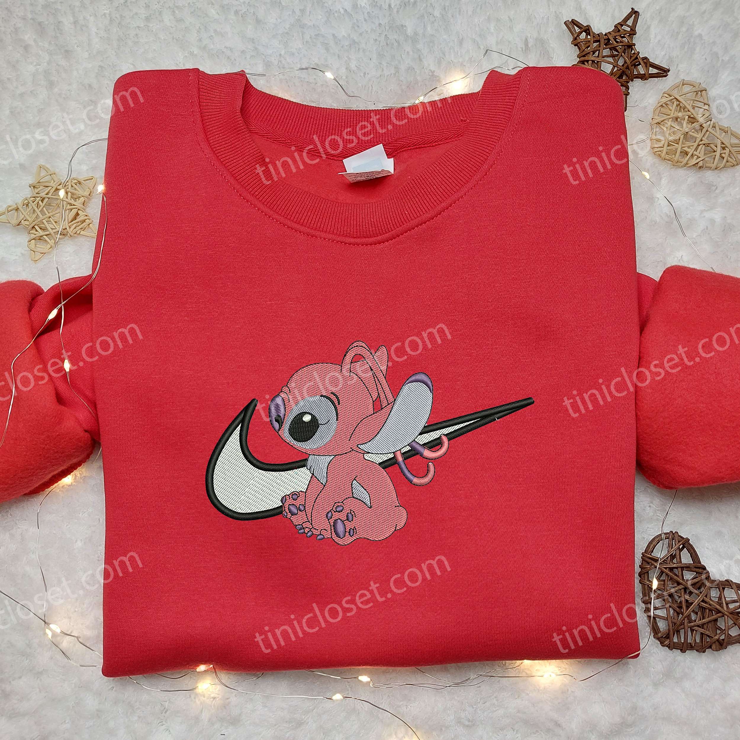 Angel Nike Swoosh Embroidered Shirt, Nike Inspired Embroidered Shirt, Lilo & Stitch Disney Shirts for Family