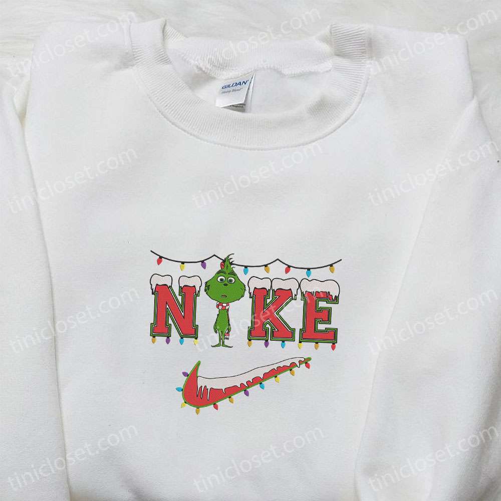 Baby Grinch Xmas x Nike Embroidered Shirt, Christmas Embroidered Hoodie, Nike Inspired Embroidered Sweatshirt