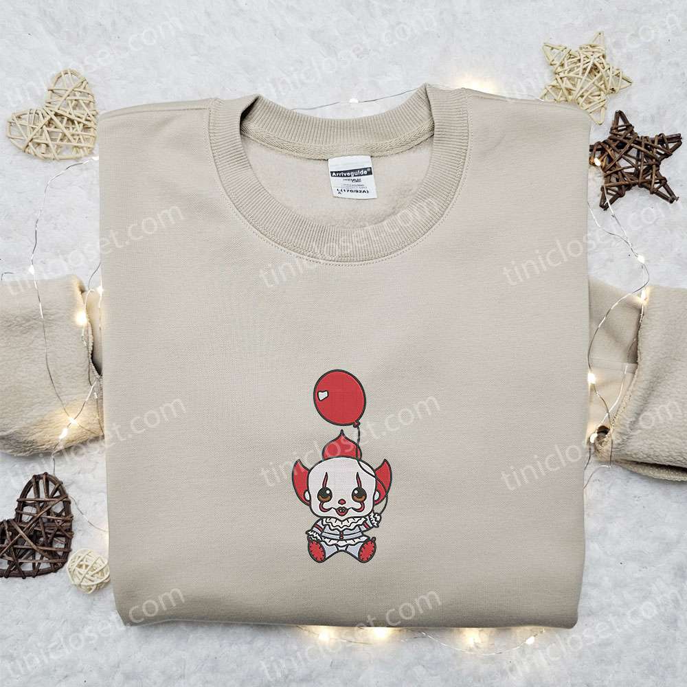 Baby Pennywise Embroidered Sweatshirt, Horror Movie Embroidered Hoodie, Halloween Embroidered Shirt