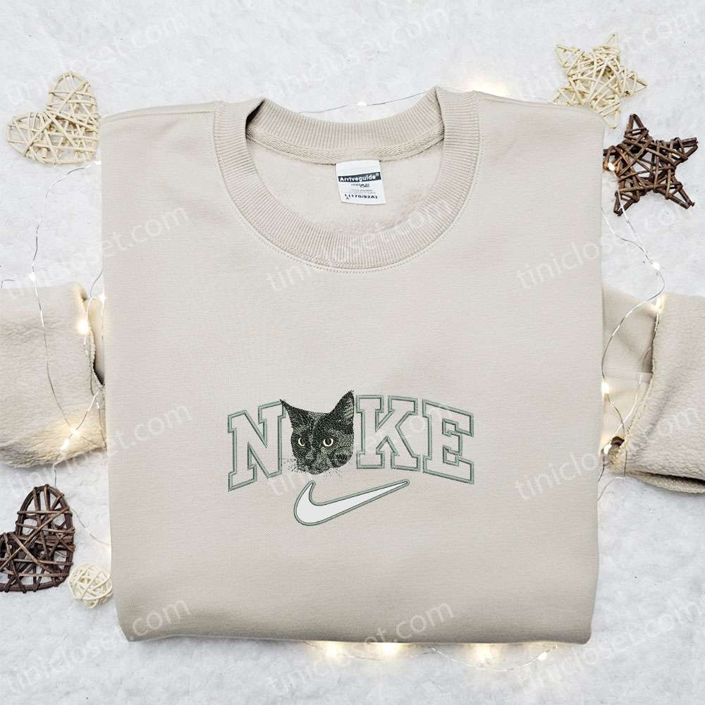 Black Cat x Nike Embroidered Shirt, Animal Embroidered Hoodie, Best Gift Ideas