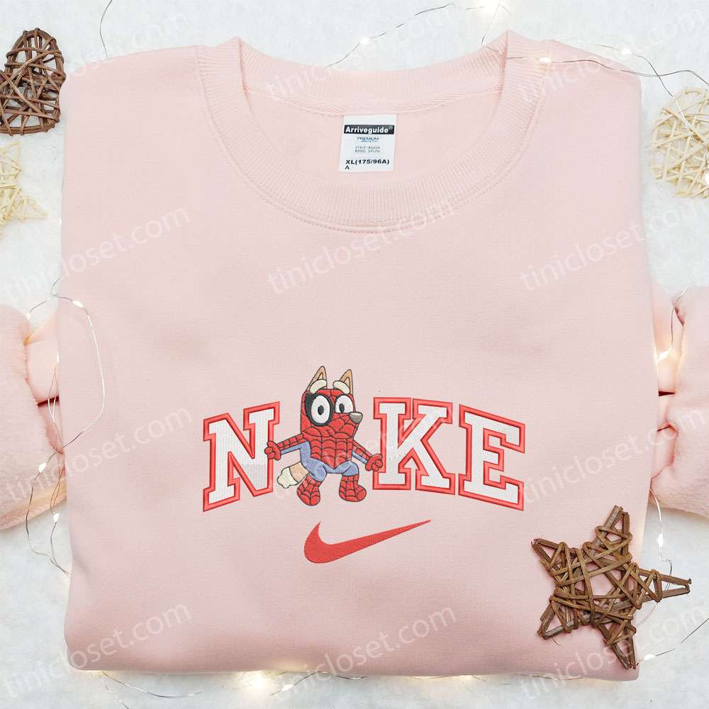 Bluey Bingo Spider-Man Team Marvel x Nike Embroidered Shirt, Cartoon Embroidered Hoodie, Nike Inspired Embroidered T-Shirt