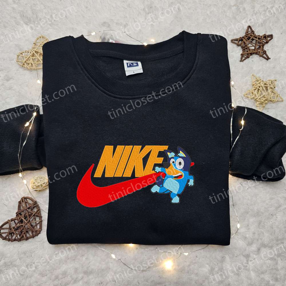 Bluey x Nike Cartoon Embroidered Shirt, The Bluey Embroidered Shirt, Custom Nike Embroidered Shirt