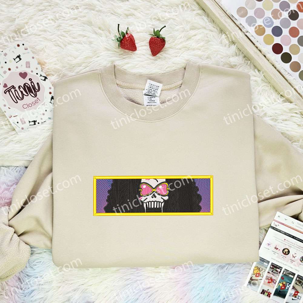 Brook Embroidered Shirt, One Piece Embroidered Hoodie, Anime Embroidered Sweatshirt