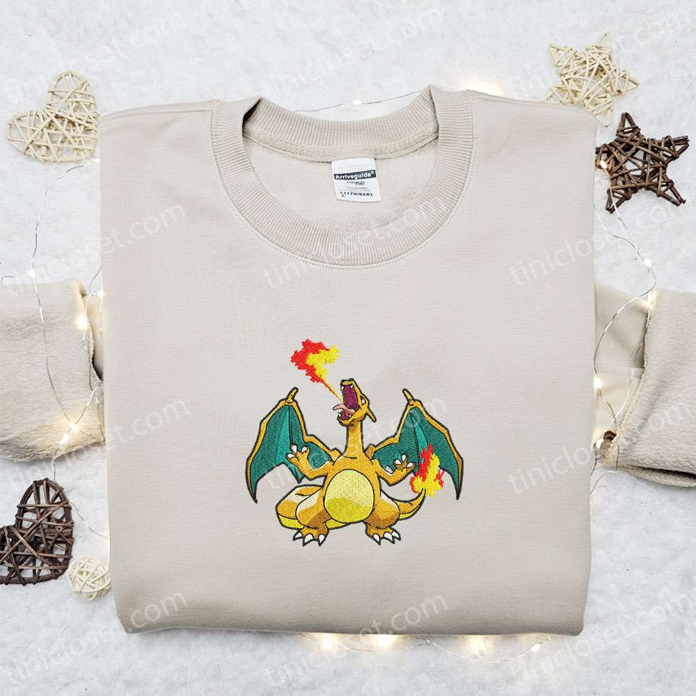 Charizard Fire Embroidered Shirt, Pokemon Anime Embroidered Hoodie, Best Gift Idea