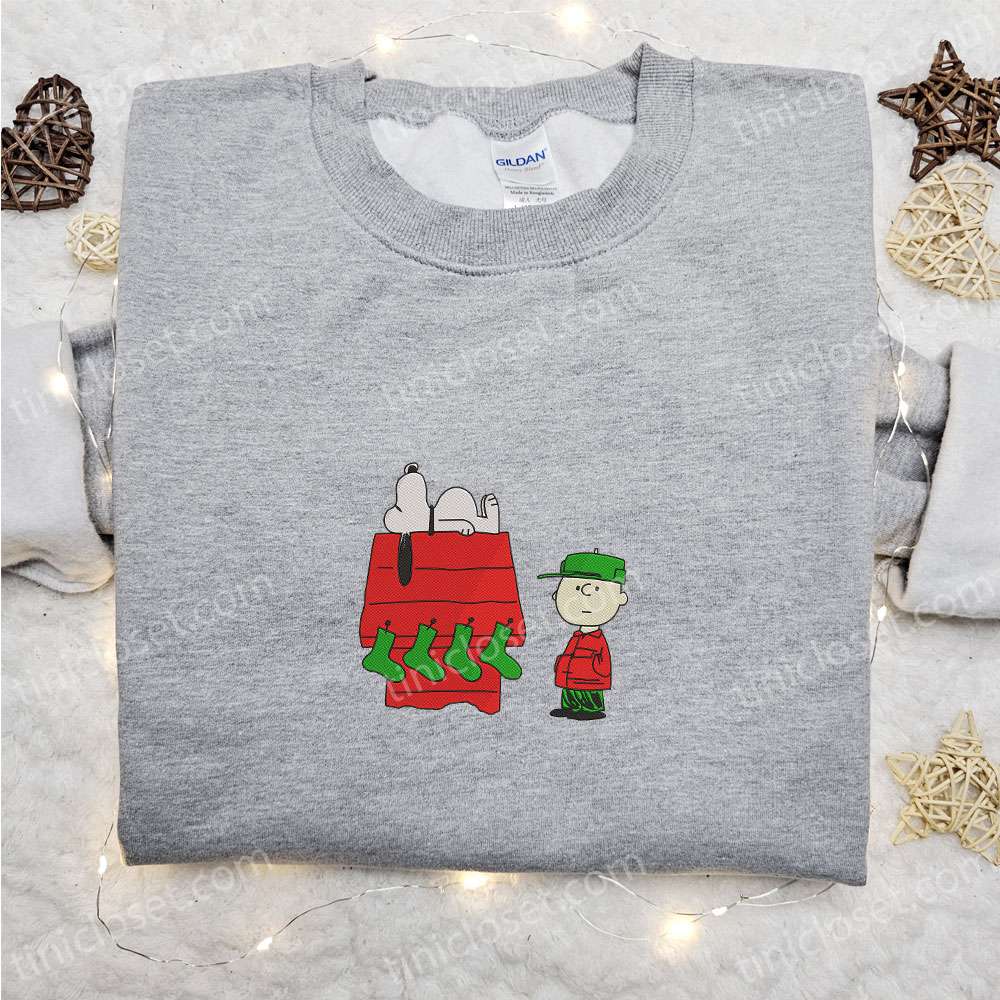 Charlie Brown And Snoopy Christmas House Embroidered Shirt, Cartoon Embroidered Hoodie, Christmas Embroidered Sweatshirt