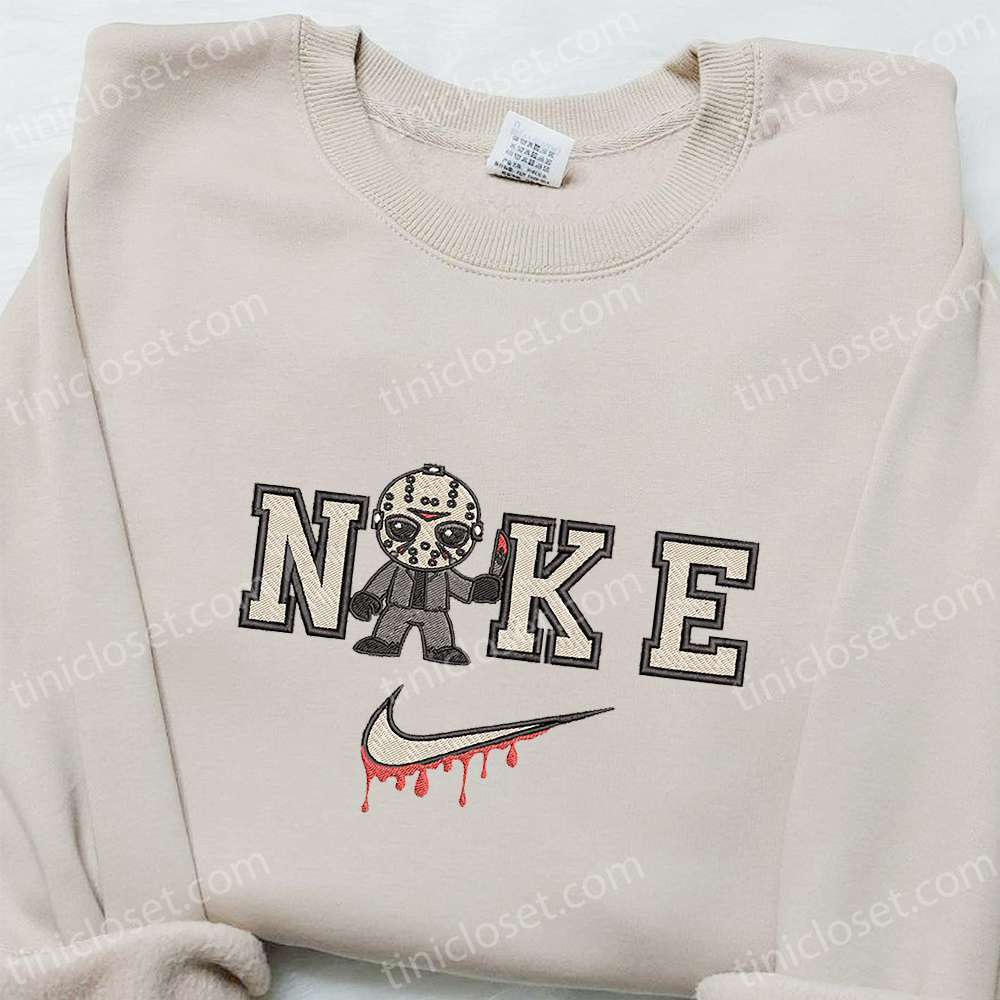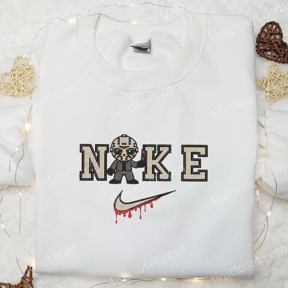 Chibi Jason Voorhees x Nike Embroidered Hoodie, Nike Inspired Embroidered Sweatshirt, Best Halloween Gifts for Family
