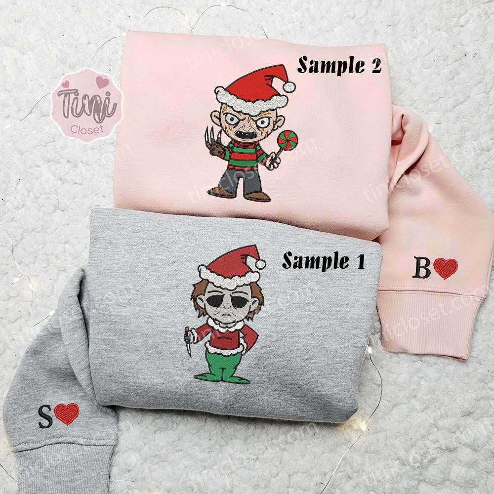 Chibi Michael Myers And Freddy Krueger Horror Christmas Halloween Embroidered Couples Shirts