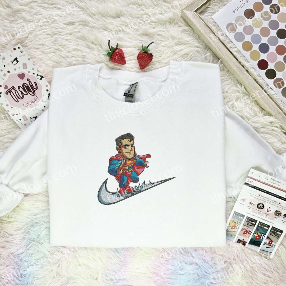 Chibi Superman Flying Embroidered Shirt, DC Characters Embroidered Hoodie
