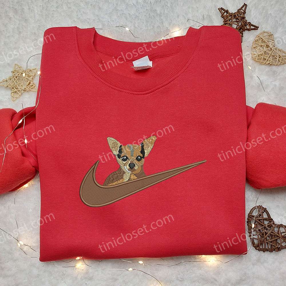 Chihuahua x Nike Embroidered Shirt, Animal Embroidered Shirt, Custom Nike Embroidered Shirt