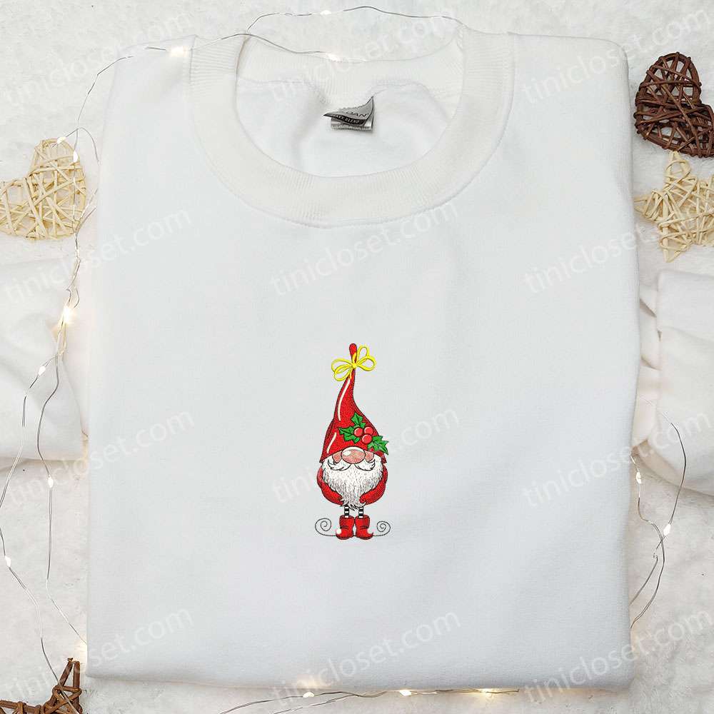 Christmas Gnome Mistletoe Embroidered Hoodie, Christmas Embroidered T-shirt, Best Christmas Gift Ideas For Family