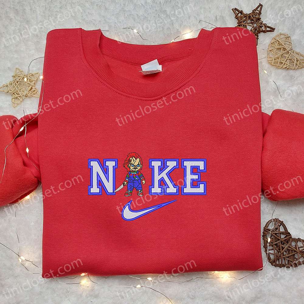 Chucky x Nike Embroidered Shirt, Horror Movie Embroidered Hoodie, Halloween Embroidered Sweatshirt