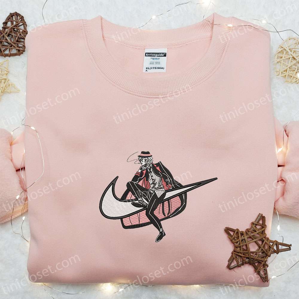 Chuuya Nakahara x Nike Swoosh Anime Embroidered Sweatshirt, Bungo Stray Dogs Embroidered Shirt, Nike Inspired Embroidered Shirt