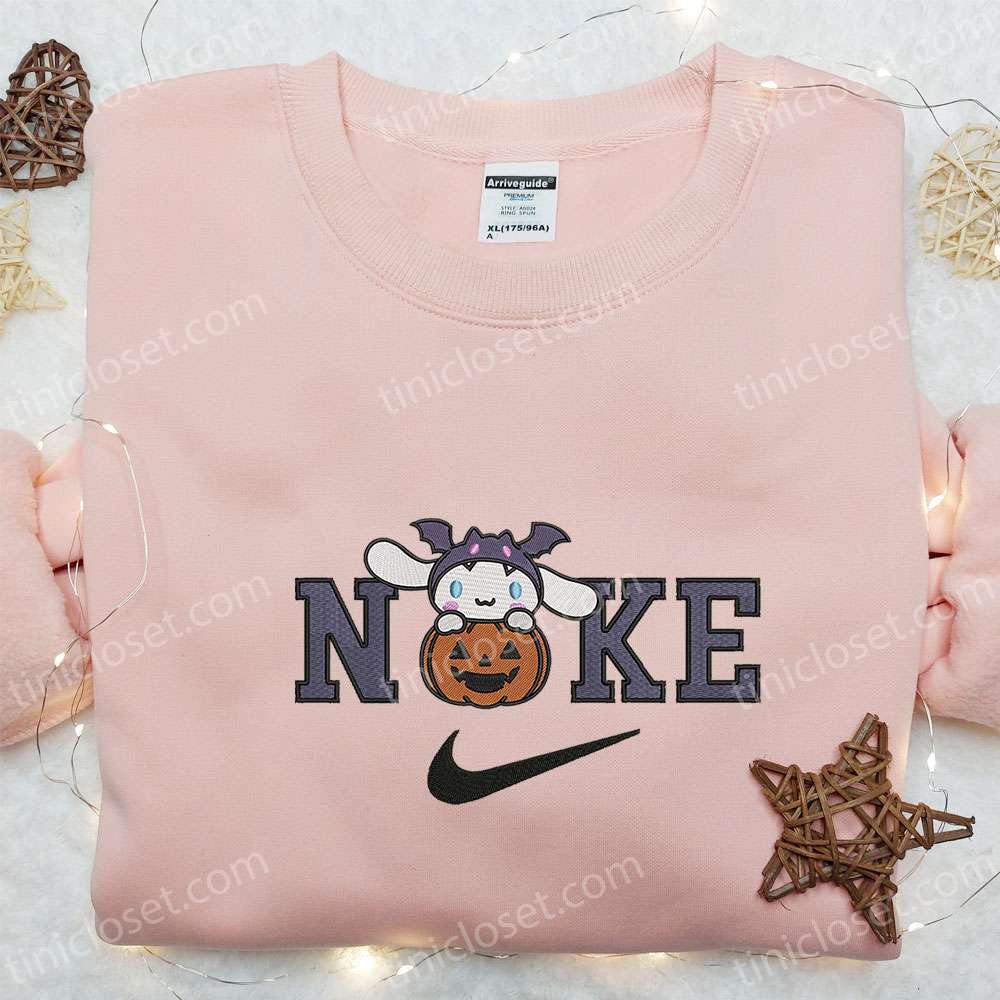 Cinnamoroll Halloween Pumpkin x Nike Embroidered Shirt, Custom Nike Embroidered Hoodie, Cute Embroidered T-shirt