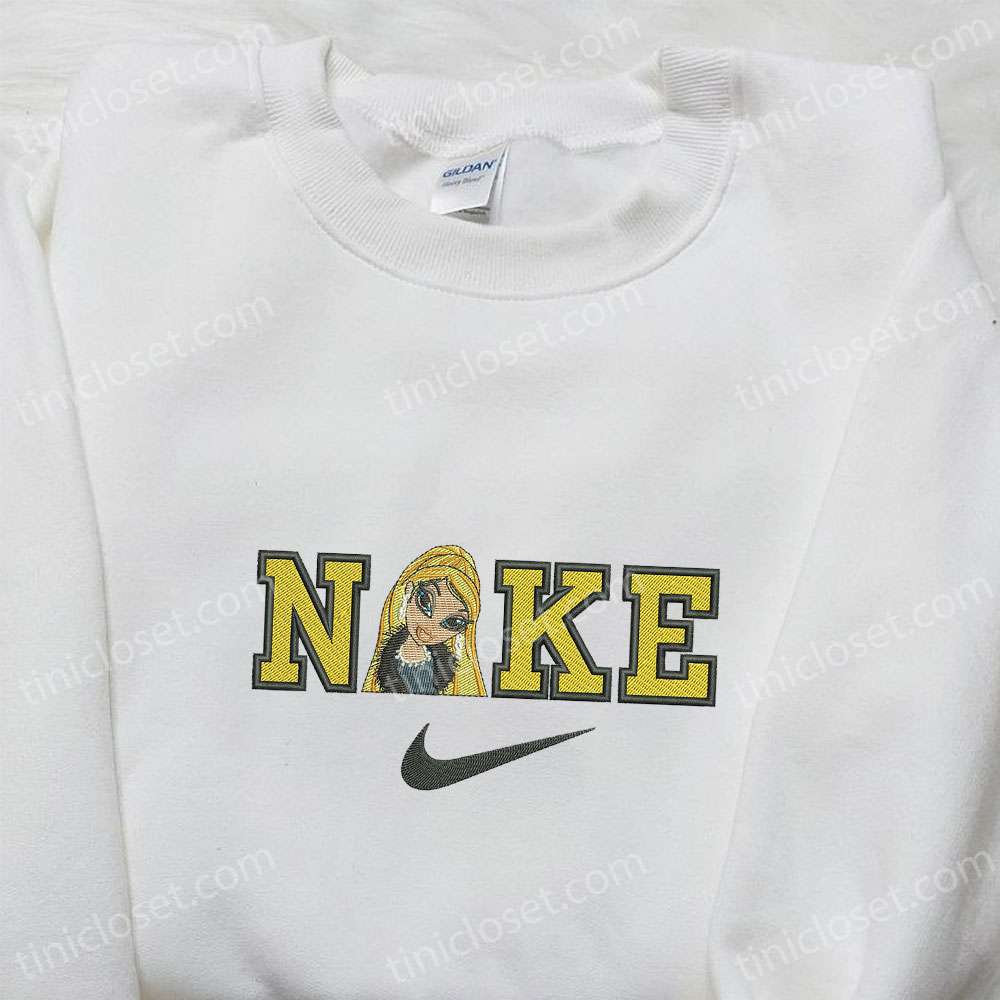 Cloe Bratz x Nike Embroidered Sweatshirt, Cartoon Embroidered Hoodie, Nike Inspired Embroidered Shirt