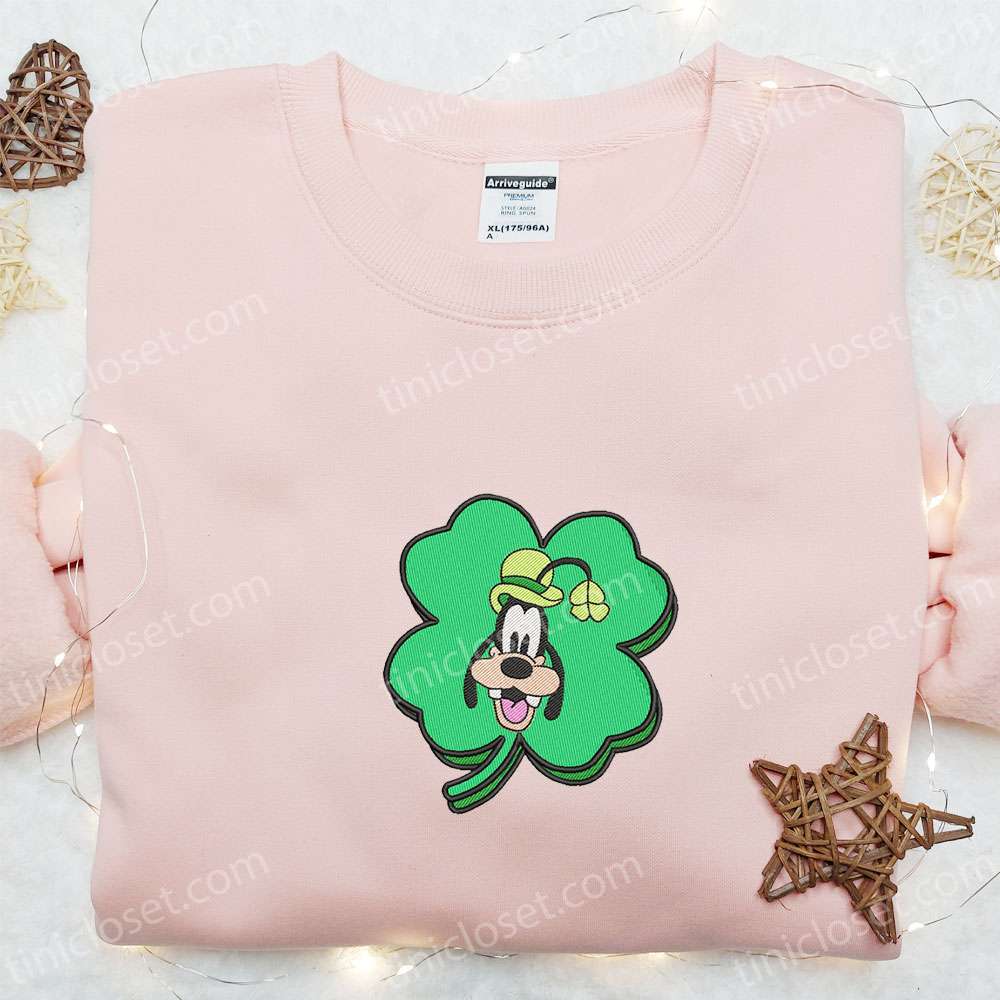 Clover Goofy Face Embroidered Shirt, Disney Characters Embroidered Hoodie, Saint Patrick?? Day Gift Ideas