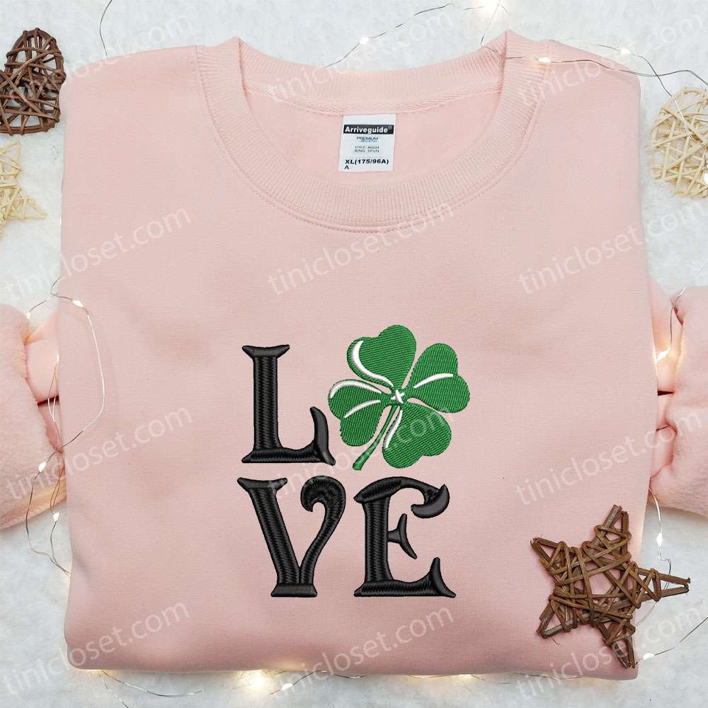 Clover Love Embroidered Shirt, Saint Patrick?? Day Embroidered Hoodie, Best Holiday Gift Idea