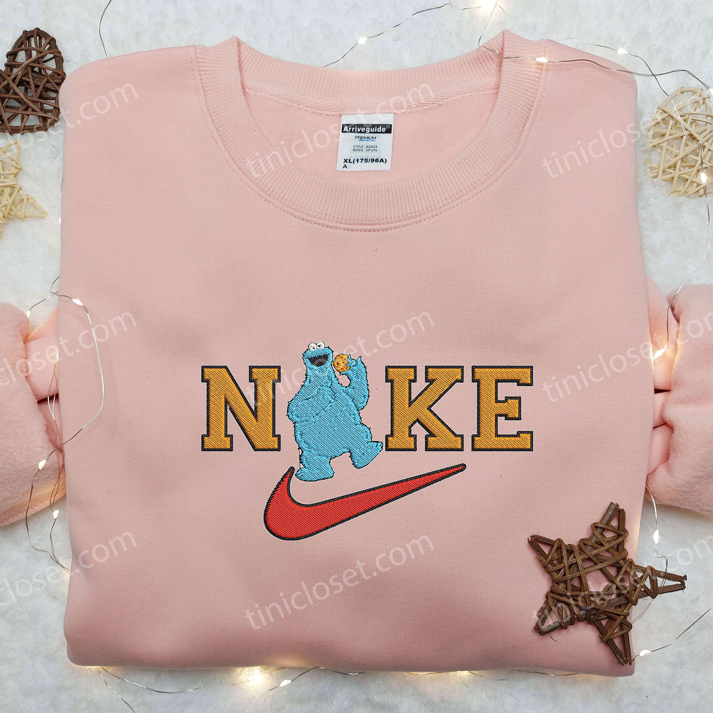 Cookie Monster Cake x Orange Nike Embroidered Shirt, Sesame Street Embroidered Shirt, Custom Nike Embroidered Shirt