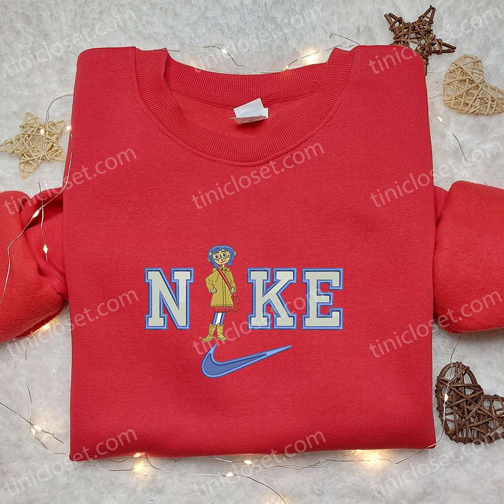 Coraline x Nike Embroidered Shirt, Cartoon Embroidered Hoodie, Nike Inspired Embroidered Sweatshirt