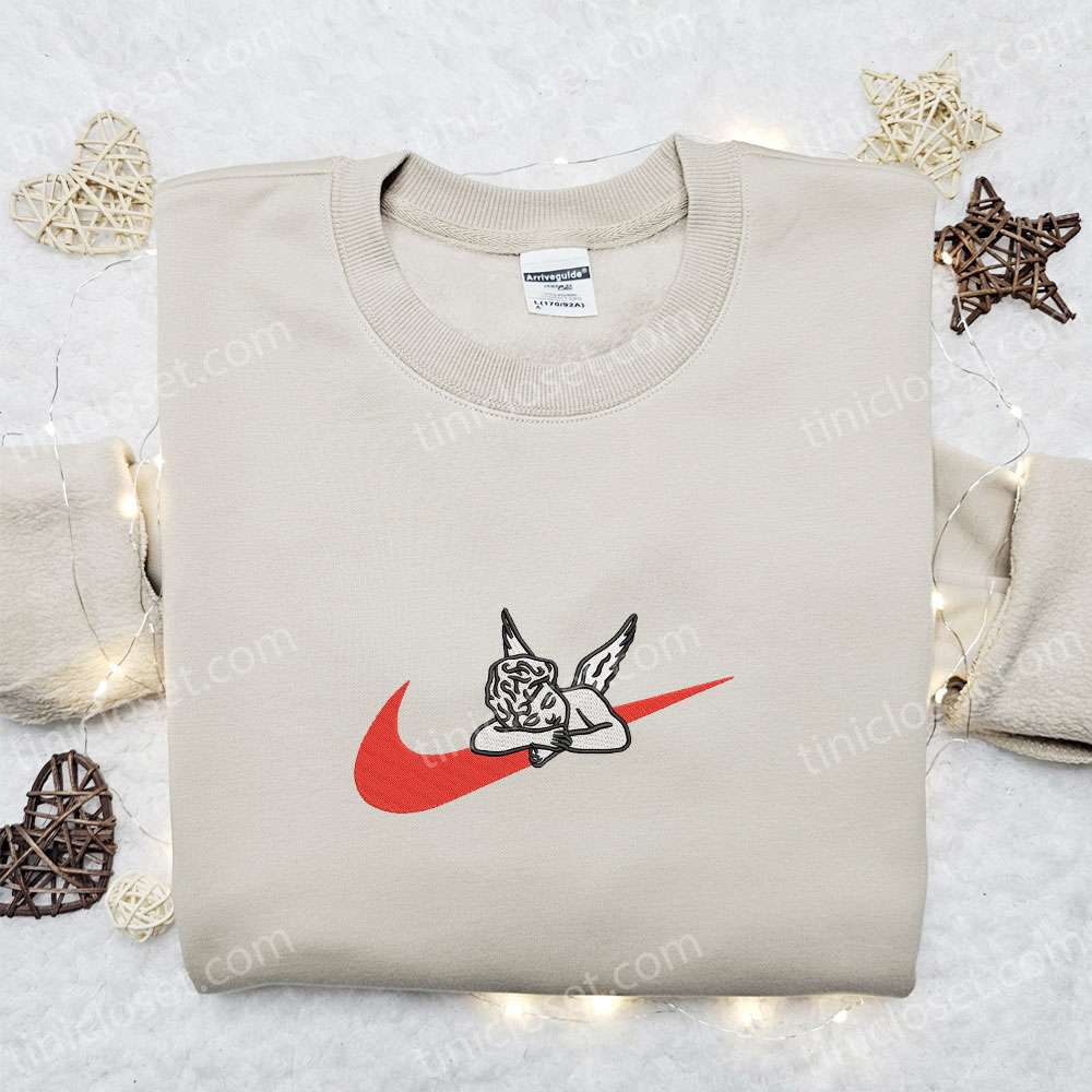 Cupid Angel x Nike Swoosh Embroidered Shirt, Valentine Embroidered Hoodie, Best Gift Idea