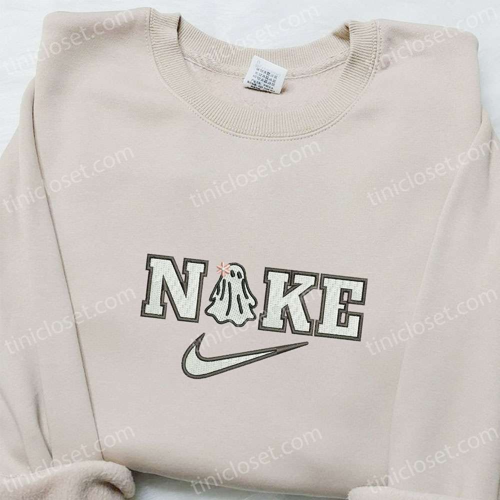 Cute Ghost Flower x Nike Embroidered Shirt, Halloween Embroidered Hoodie, Nike Inspired Embroidered Sweatshirt