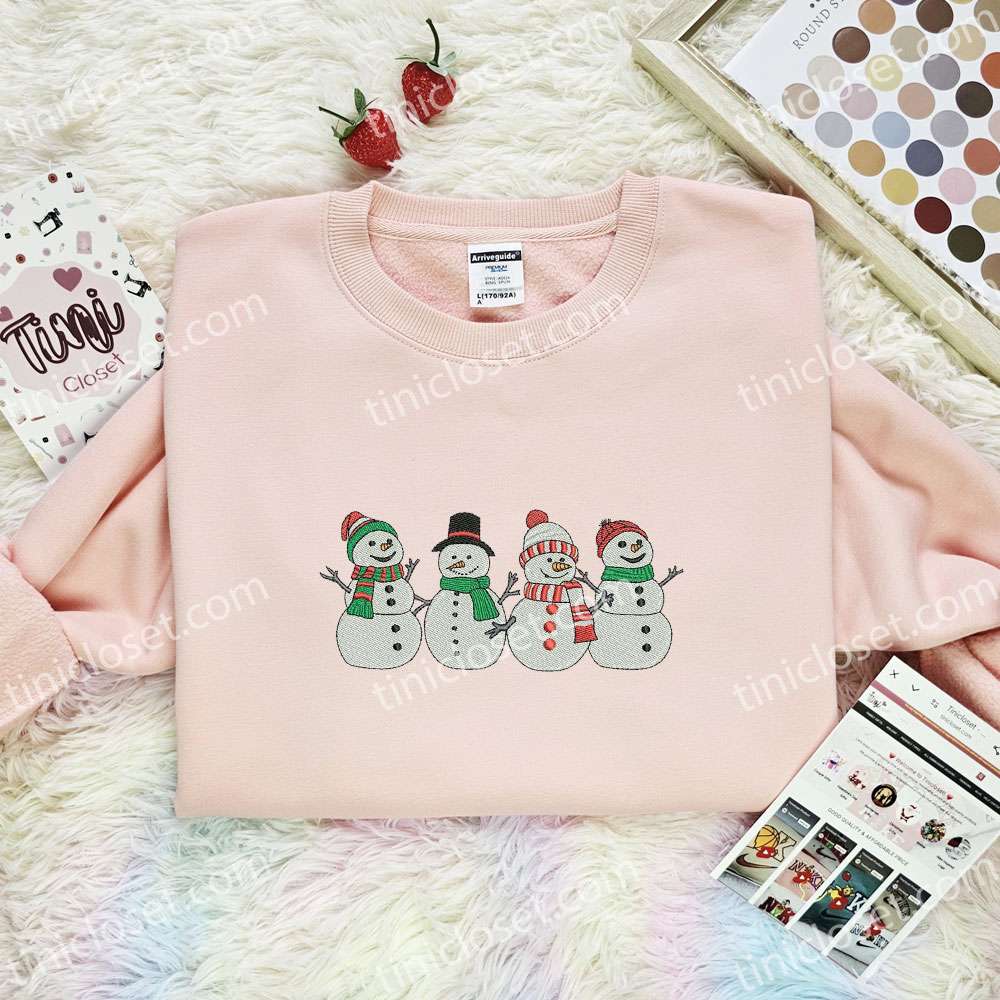 Cute Snowmen Christmas Embroidered Shirt