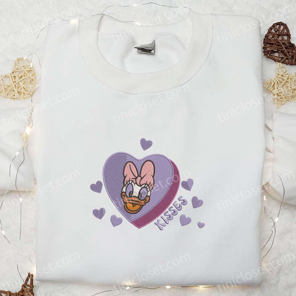 Daisy Duck Hearts Kisses Embroidered Shirt, Disney Characters Embroidered Hoodie, Best Gift For Family
