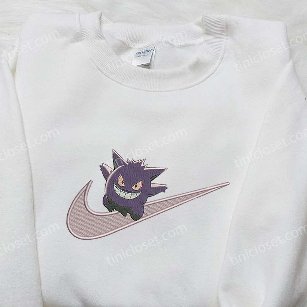 Gengar Hey x Nike Embroidered Shirt, Pokemon Embroidered Shirt, Custom Nike Embroidered Shirt