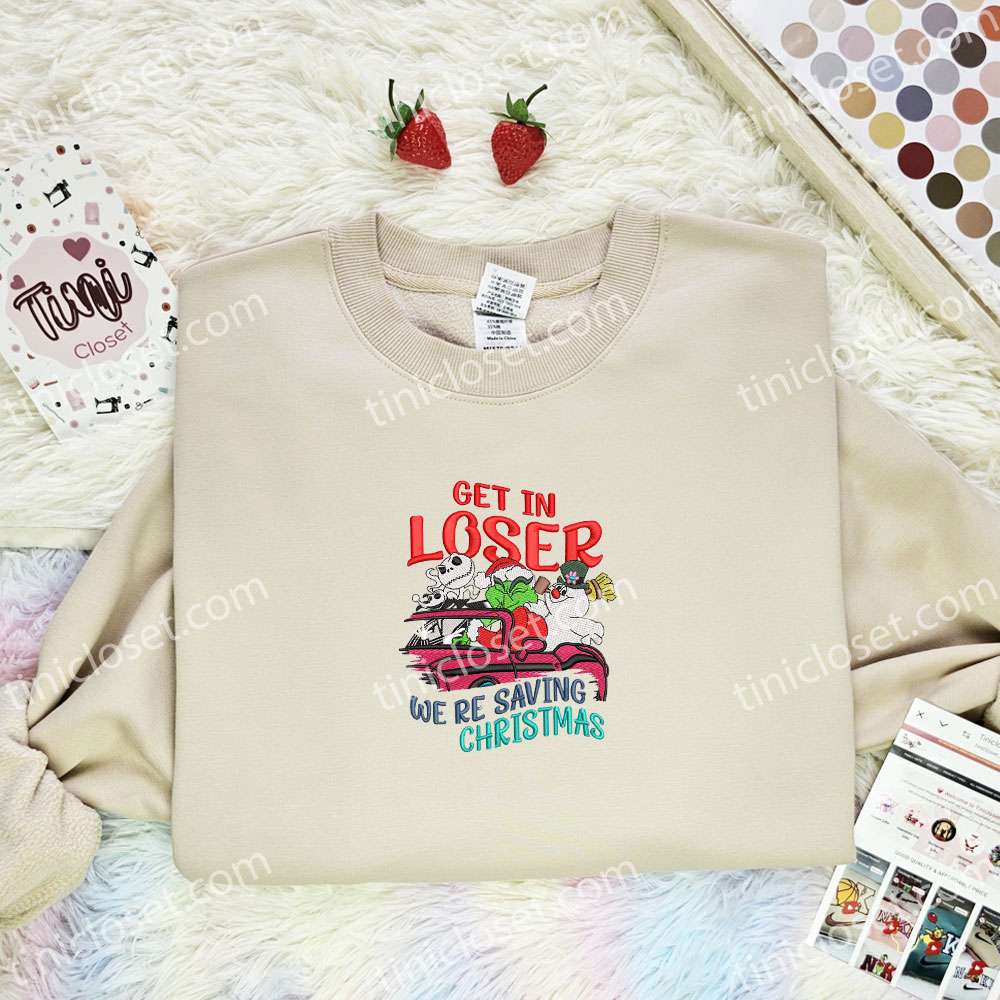 Get In Loser We’re Saving Christmas Embroidered Shirt