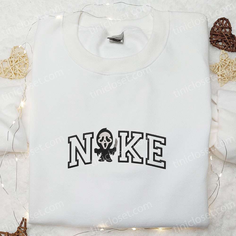Ghostface Chibi x Nike Embroidered Shirt, Horror Movie Embroidered Hoodie, Halloween Embroidered Sweatshirt