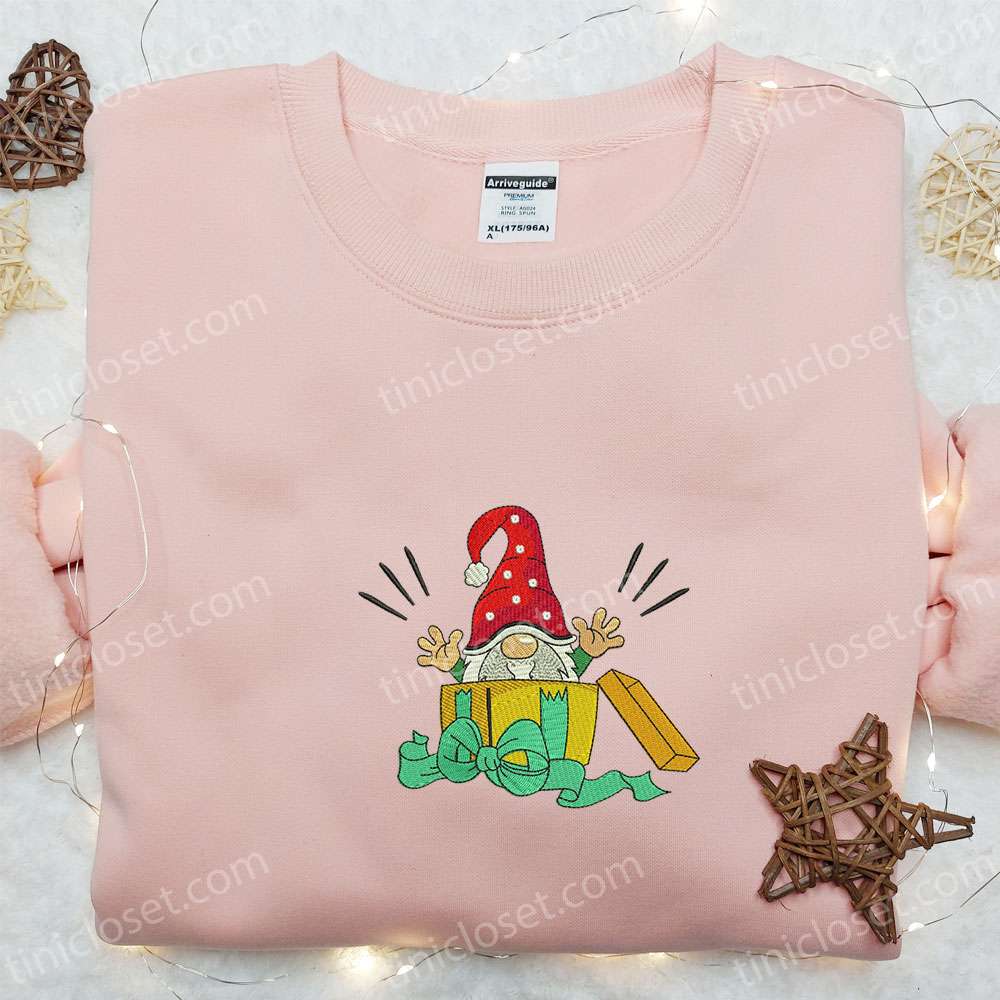 Gift Box Gnome Christmas Embroidered Shirt, Christmas Embroidered Hoodie, Best Christmas Gift Ideas