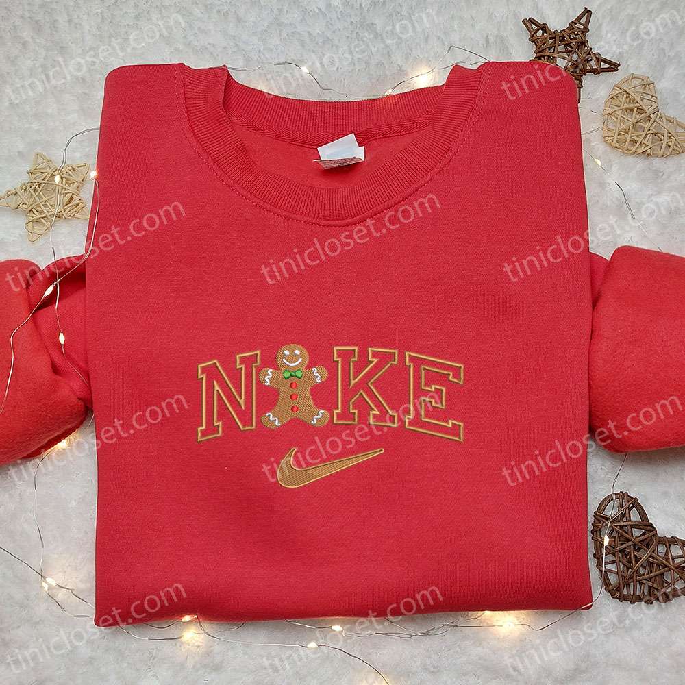 Gingerbread Man Happy x Nike Embroidered Shirt, Christmas Embroidered Sweatshirt, Nike Inspired Embroidered Hoodie