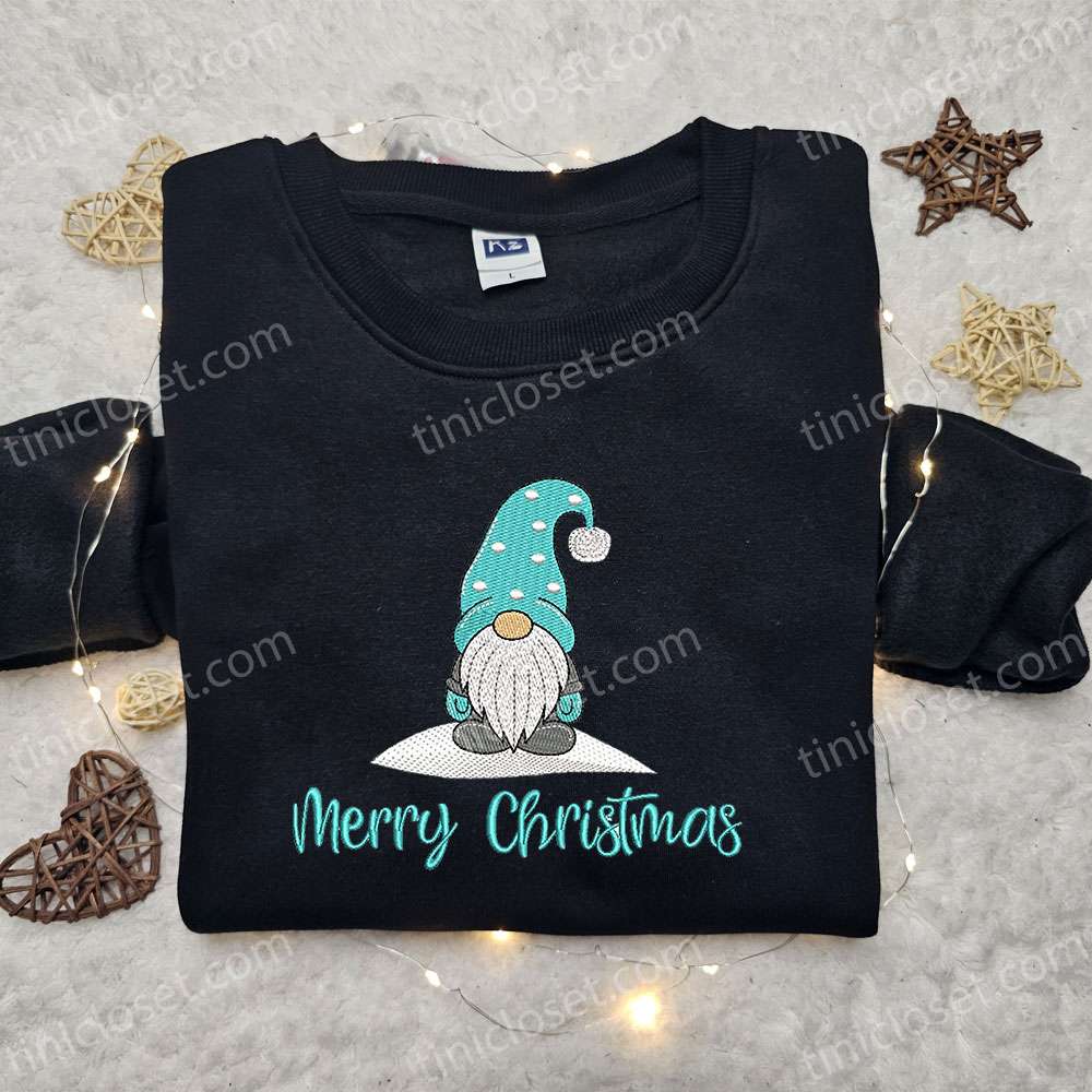 Gnome Merry Christmas Holiday Embroidered Hoodie, Cute Christmas Embroidered T-shirt, Best Christmas Gift Ideas For Family