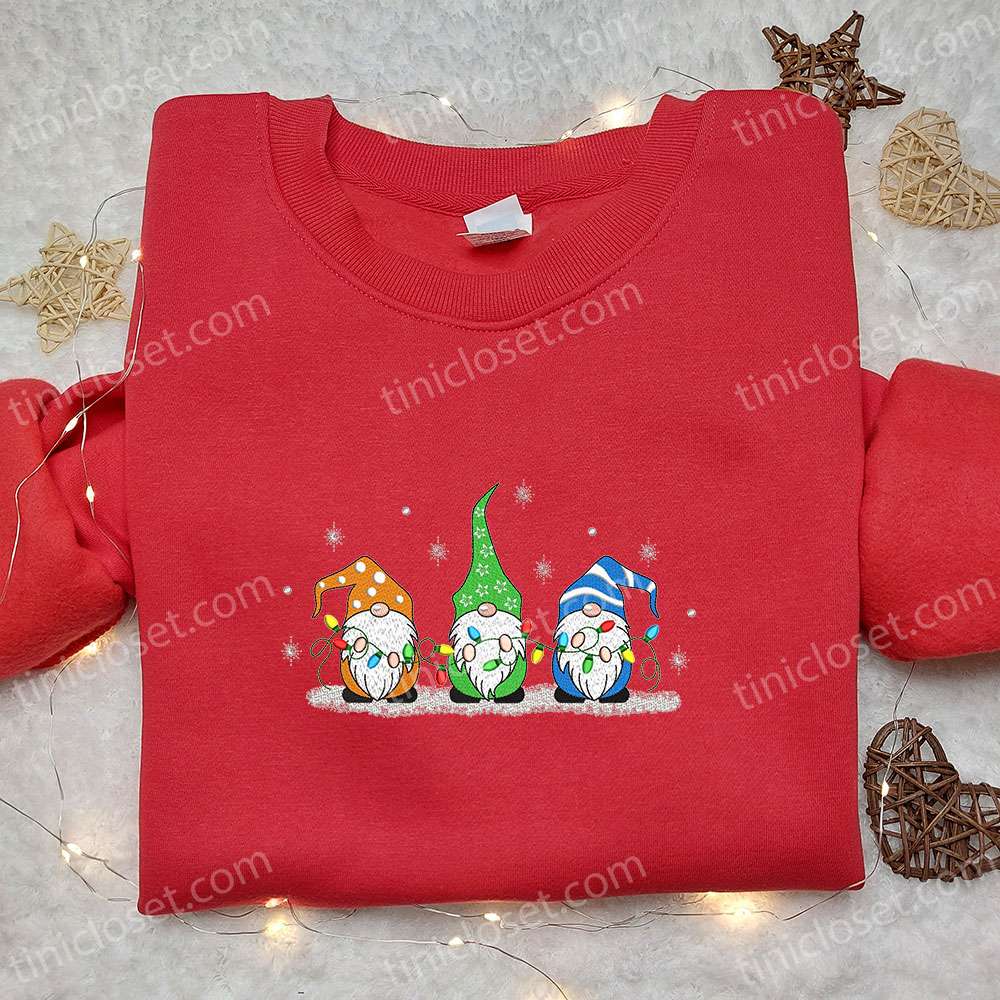 Gnomes With Christmas Lights Embroidered Sweatshirt, Cute Christmas Embroidered Sweatshirt, Best Christmas Gift Ideas For Family