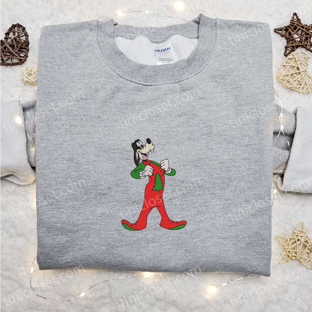 Goofy Wearing Christmas Pajama Embroidered Shirt, Disney Characters Embroidered Hoodie, Christmas Embroidered Sweatshirt