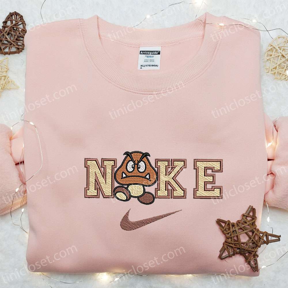 Goomba x Nike Cartoon Embroidered Shirt, Super Mario Embroidered Hoodie, Custom Nike Embroidered T-shirt