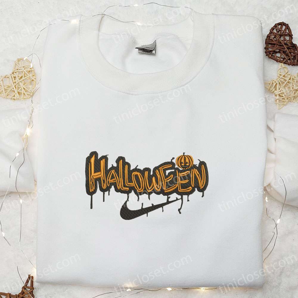 Halloween Pumpkin x Nike Embroidered Sweatshirt, Halloween Embroidered Shirt, Best Halloween Gift Ideas