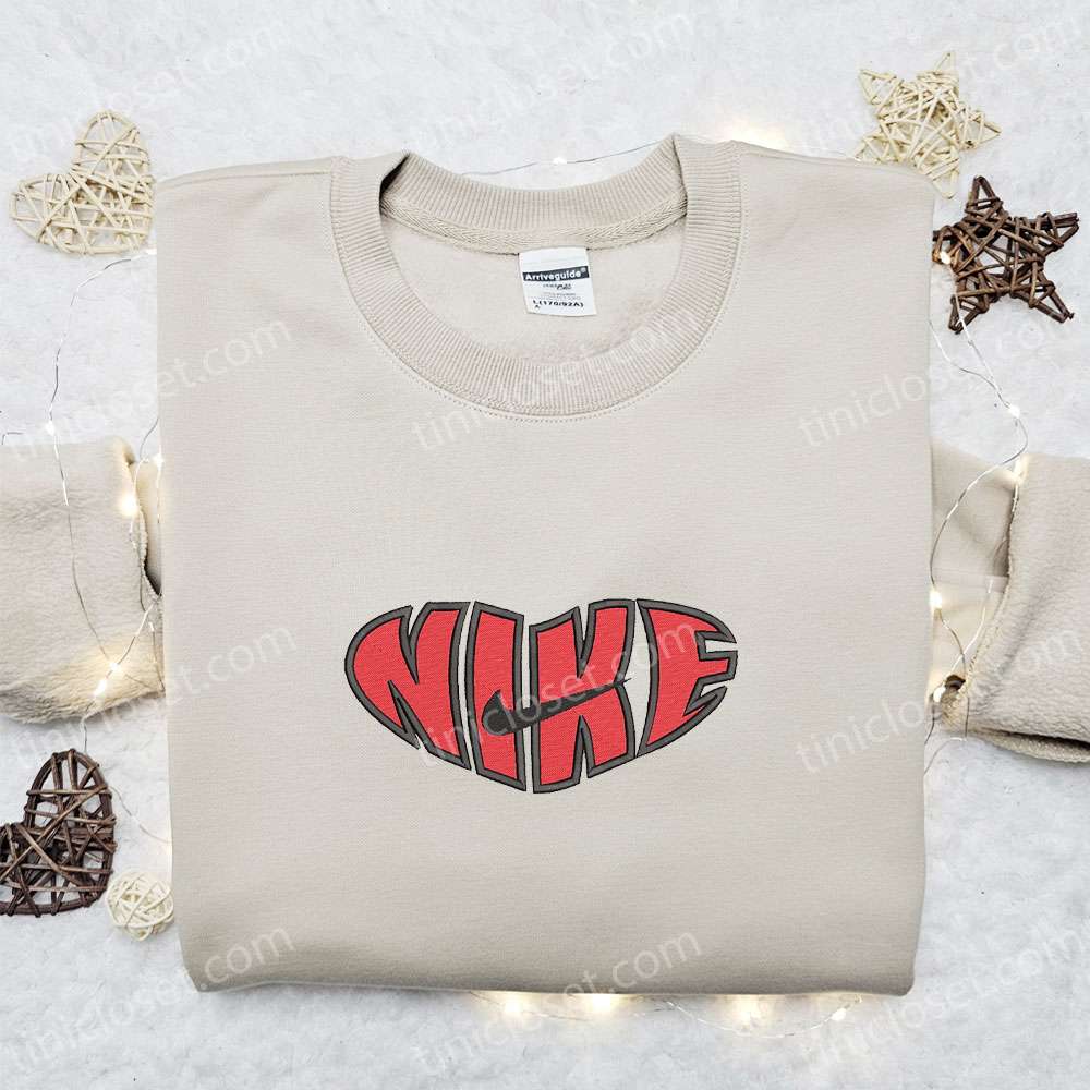 Heart x Nike Swoosh Embroidered Sweatshirt, Nike Inspired Embroidered Shirt, Best Valentine?s Day Gift Ideas