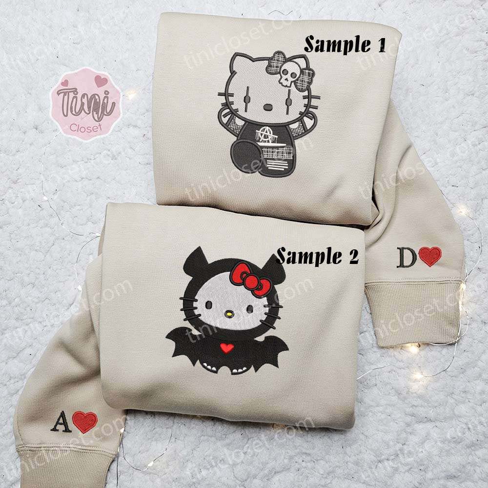Hello Kitty Grunge And Bat Halloween Costume Embroidered Couples Shirts
