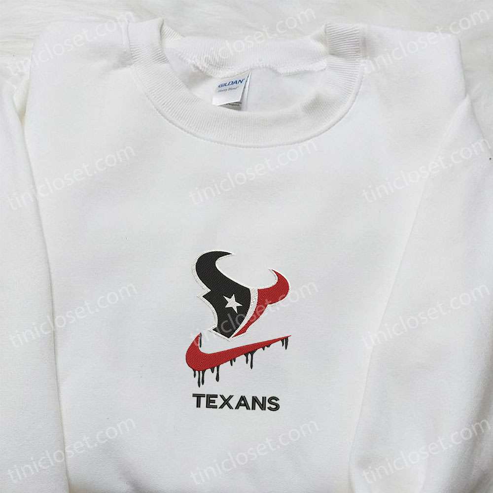 Houston Texans x Nike Swoosh Drip Embroidered Shirt, NFL Sports Embroidered Hoodie, Best Gift Ideas