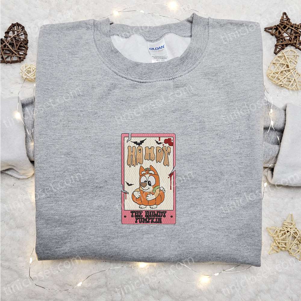 Howdy Pumpkin Embroidered Shirt, The Bluey Halloween Embroidered T-shirt, Best Halloween Gift Ideas