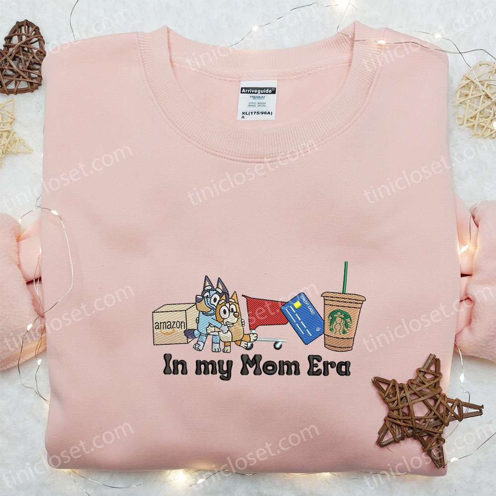 In My Mom Era Embroidered Shirt, Bluey Cartoon Embroidered Hoodie, Best Mother? Day Gift Idea