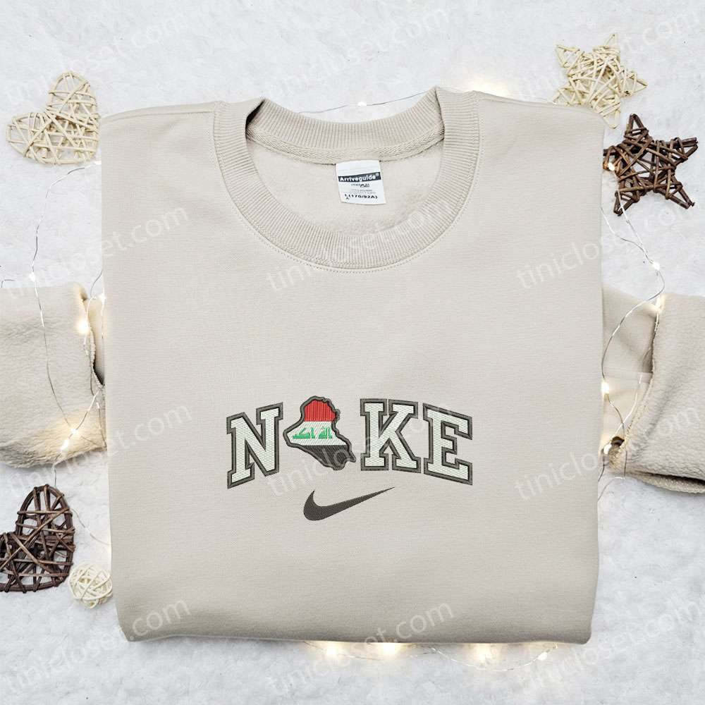 Iraq Map x Nike Embroidered Shirt, Nike Inspired Embroidered Hoodie, Best Patriotic Shirts