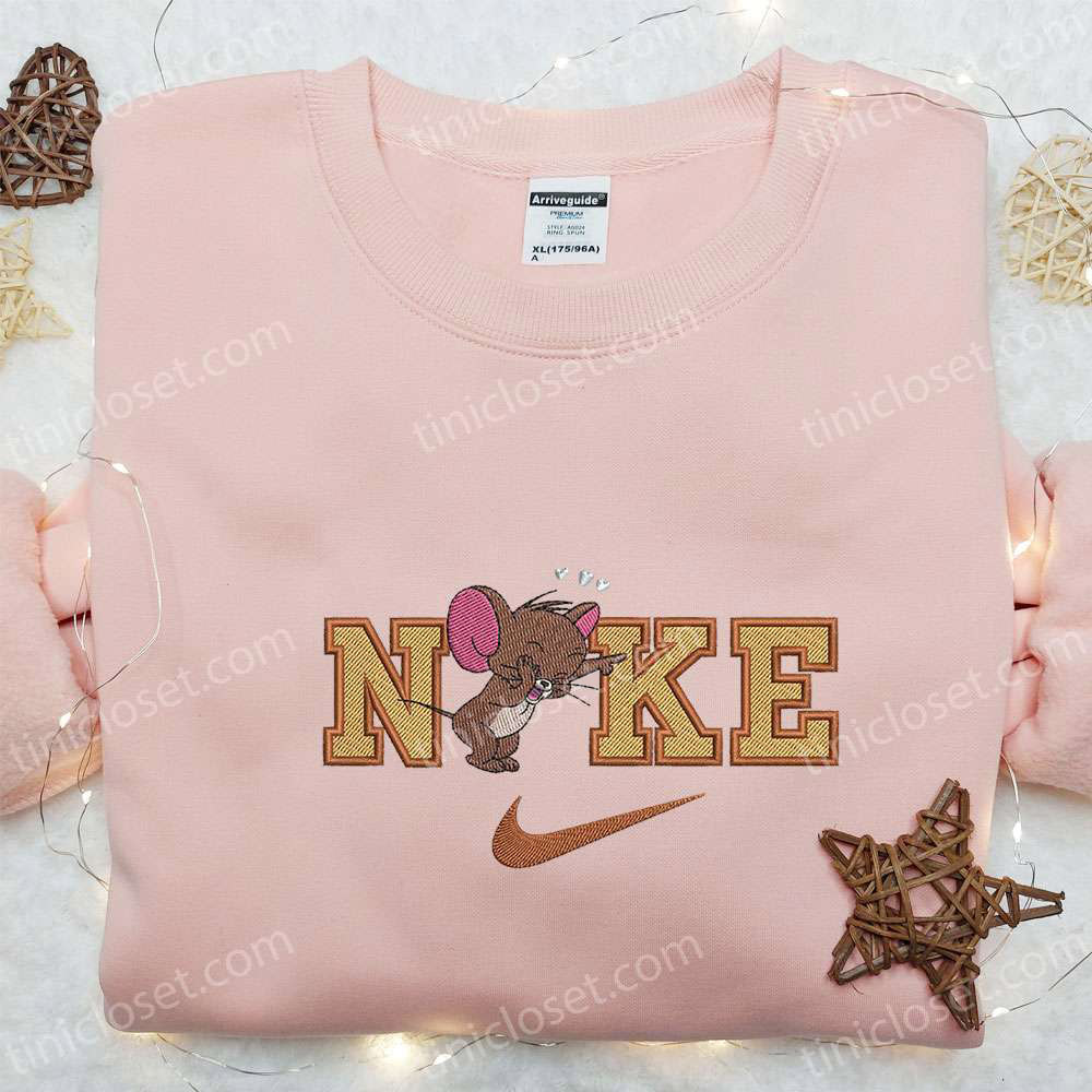 Jerry Heart x Nike Cartoon Embroidered Shirt, Tom and Jerry Embroidered Shirt, Nike Inspired Embroidered Shirt
