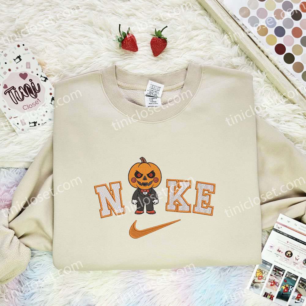 Jigsaw Pumpkin Head Embroidered Shirt, Horror Movie Embroidered Hoodie, Halloween Embroidered Sweatshirt