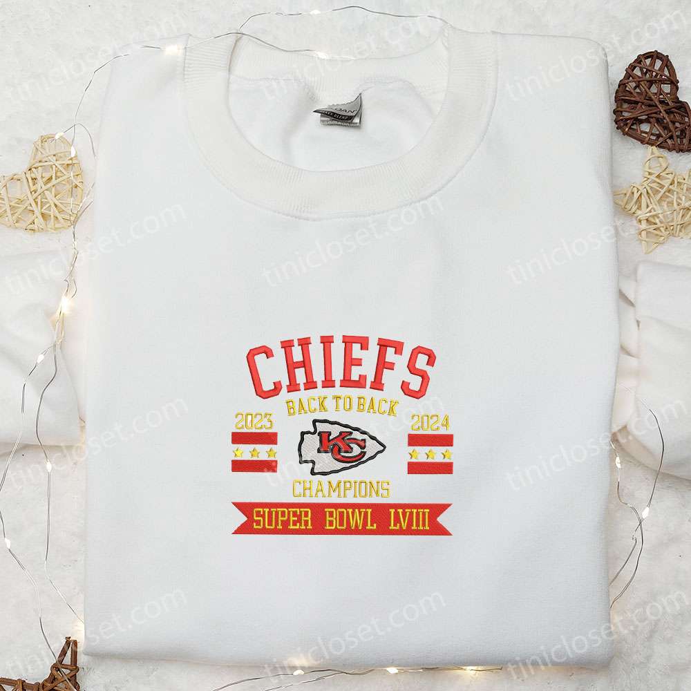 Kansas City Chiefs Back To Back Champions Embroidered Shirt, NFL Sports Embroidered Hoodie, Best Fandom Gift Ideas