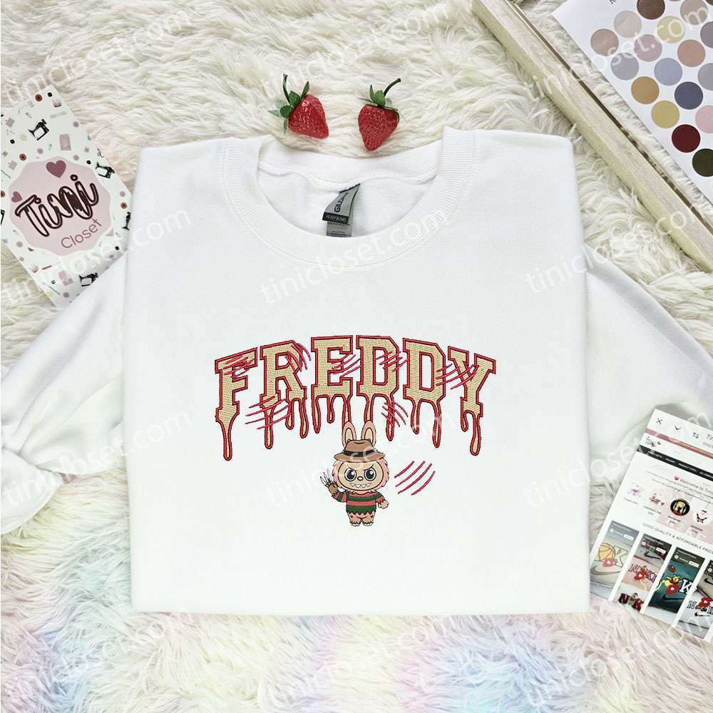 Labubu Freddy Krueger Embroidered Shirt, Art Toy Embroidered Hoodie, Halloween Embroidered T-Shirt
