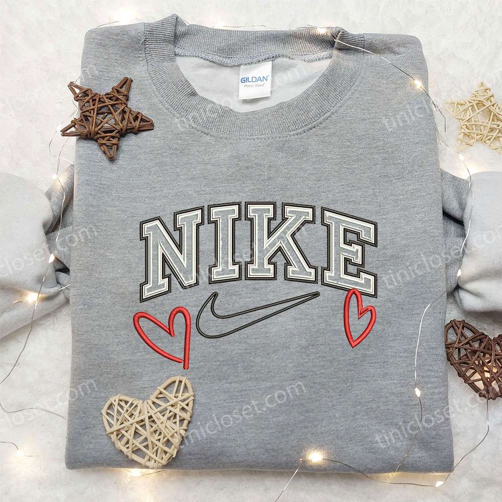 Love Heart x Nike Embroidered Sweatshirt, Nike Inspired Embroidered Shirt, Best Valentine Days Gift Ideas