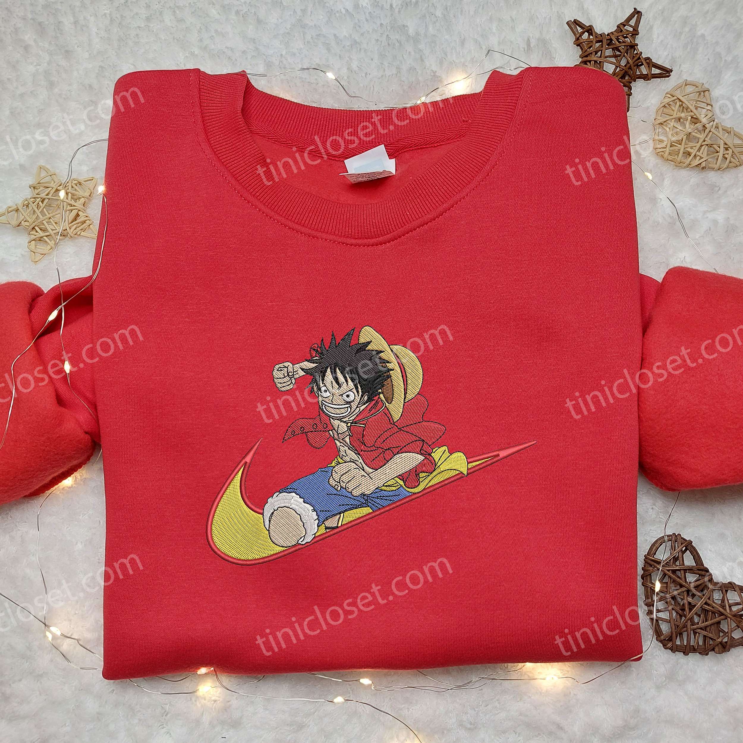 Luffy Nike Embroidered Shirt, One Piece Embroidered Shirt, Nike x Anime Embroidered Shirt