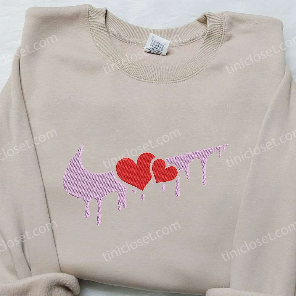 Melt Heart x Nike Embroidered Shirt, Valentine Embroidered Shirt, Custom Nike Embroidered Shirt