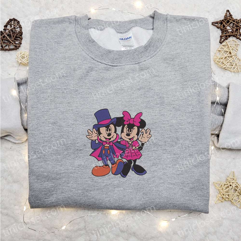 Mickey And Minnie Dracula Embroidered Sweatshirt, Disney Characters Embroidered Hoodie, Best Halloween Gift Ideas